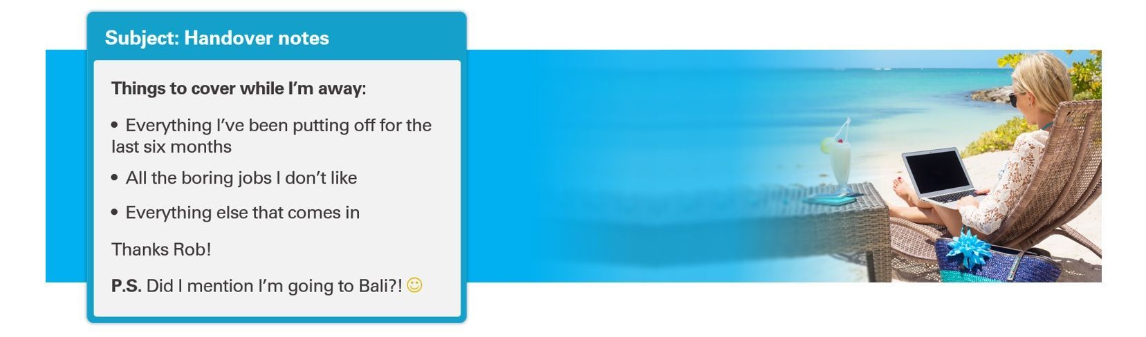 Aim to strike the balance with a comprehensive but concise approach to your HHN. HR News suggests that ‘…there’s no need to cause an unreasonable amount of stress on the employee/s covering you whilst you’re away, so highlighting all the ‘need-to-know’ points will help them keep on top of things’. Order tasks by priority and include key delivery dates or deadlines, with the most recent first.